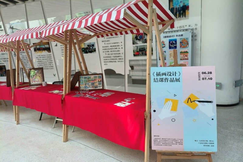 在艺术的海洋中,每一幅作品都是航行者的风帆。经过一个学期的刻苦学习和创作,艺术设计学院产品设计22级插画设计选修班结课展览圆满落幕。本次展览在博艺楼一楼大厅举办。6月28日至7月10日进行展出,展出内容为同学们在《插画设计》课程中的作业,展现了他们在课堂中的探索与努力,也彰显了同学们对艺术的热爱。(图为展览现场)   展览现场,学生们被这些充满想象力和创造力的作品深深吸引。本次作品主题为《二十四节气的安信工》,同学们围绕校园内的场景,选定任意二十四节气进行插画制作。从手绘草稿再到数字化处理,每一步都经过了学生们的仔细思索与考量,用画笔细细描绘信工色彩。正如毕加索所言:“艺术的使命在于洗刷我们灵魂中日积月累的灰尘”,这些年轻的学生艺术家们用笔触探索着校园的一草一木,他们的作品不仅仅是视觉的享受,更是心灵的触动。(图为展品展示)   展览进行时,学生们也积极前往现场观摩了自己与其他同学的课程成果,本次展览也受到其他专业的老师和同学喜爱,前来观展。展览的成功举办,为学生们提供了一个展示自我的平