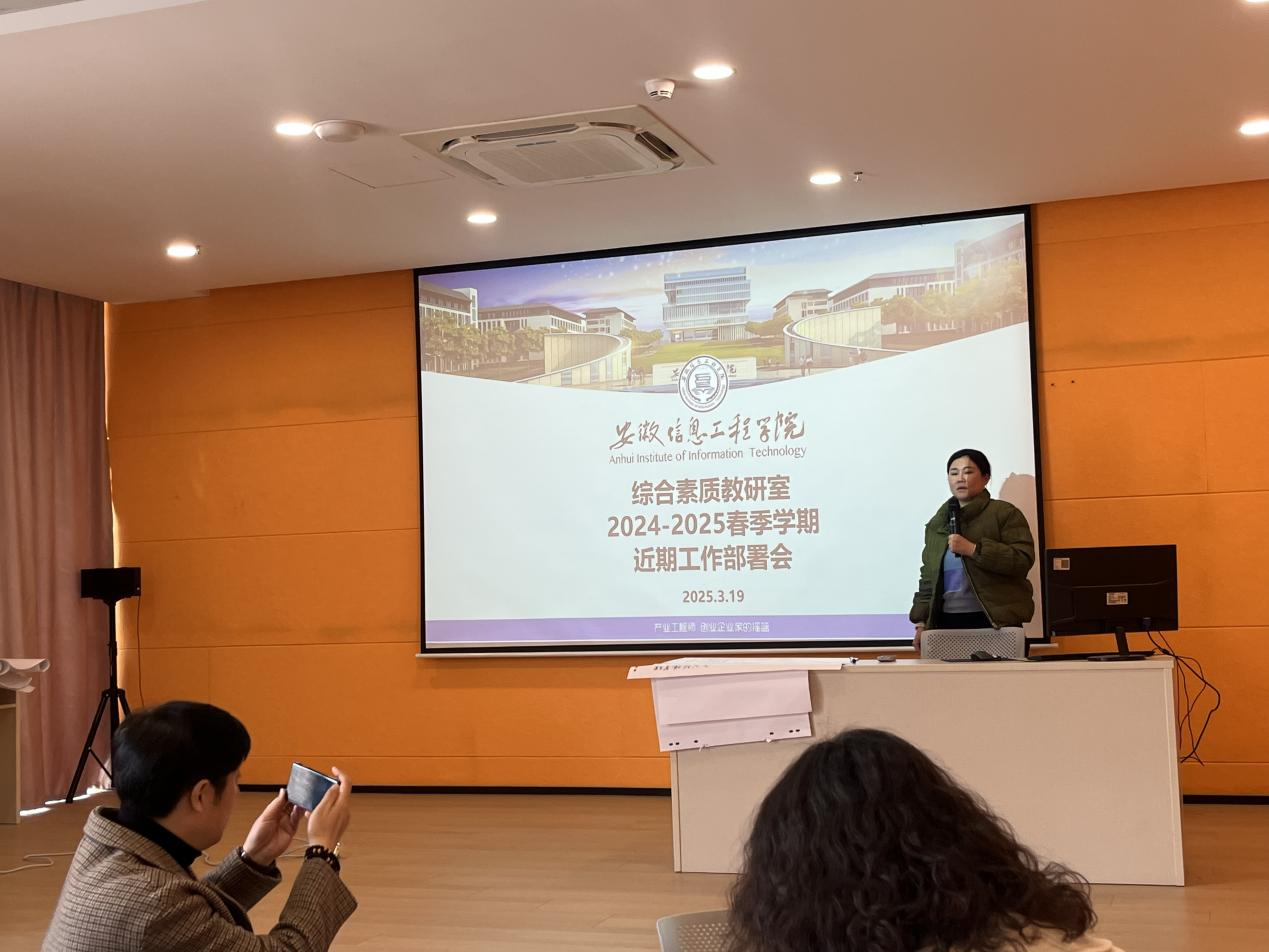 2025年3月19日,安徽信息工程学院紫云英创新创业学院综合素质教研室在A37梧桐教室召开教学部署会,正式启动第四届“教学活动月”相关工作。会议由教研室主任王蕾主持,全体教师参会。会议围绕“教学活动月”、就业指导课程改革、一站式服务中心值班安排等重点工作展开,旨在通过一系列教学创新活动,提升教师教学能力,推动教育教学质量再上新台阶。 (图为王蕾主任主持会议)本届教学活动月以“深化教学改革赋能师生成长”为主题,涵盖课程观摩、人工智能赋能教学改革评选、教学片段展示评选、课程思政优秀案例评选等多个模块。其中,人工智能赋能教学改革评选成为亮点,老教师将搭配值班,老教师主导,新教师观摩学习,确保服务质量。此外,有计划有组织开展好就业鼓励教师将人工智能技术与教学深度融合,创新教学方法。此外为响应学校就业指导课程改革要求,综合素质教研室老师将为学生提供求职需求分析、简历优化、面试技巧等一对一指导服务。会议特别强调,新相关的专业培训,从而提升教师的就业指导能力。围绕学院创新改革项目持续推进工作,就业指导