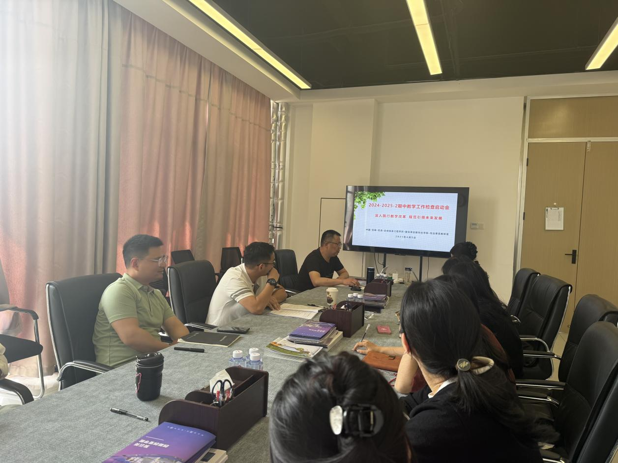 为加强教学管理和质量监控,进一步提高教学质量,根据教务处《关于开展2024-2025学年春季学期期中教学检查工作的通知》(教字〔2025〕36号)文件要求,紫云英创新创业学院近日圆满完成了2024-2025学年春季学期期中教学检查工作。学院高度重视,组织开展期中教学检查全体会议,发布工作实施方案,初步建立了个人自查、教师互查、教研室检查、学院检查的四级检查机制,覆盖学院所有的专任教师,针对教学材料准备、教学材料归档、教研室活动规划、课堂教学改革、教风学风建设等多个维度进行了全面而深入的检查。 (图为工作布置会)2025年4月8日至10日期间,学院教研室积极开展期中教学检查的自查、互查工作,发现自身问题的同时,同课题组的教师之间互通有无,借鉴优秀做法,促进教学质量整体提升。11日学院教学管理团队进行随机抽查,进一步差缺补漏,并对查出的问题集中汇总反馈,将教学检查问题整改落到实处,形成检查工作闭环。 (图为检查现场)根据学校整体工作安排,4月14日上午,分管教学副校长、教务处负责人及各业务主