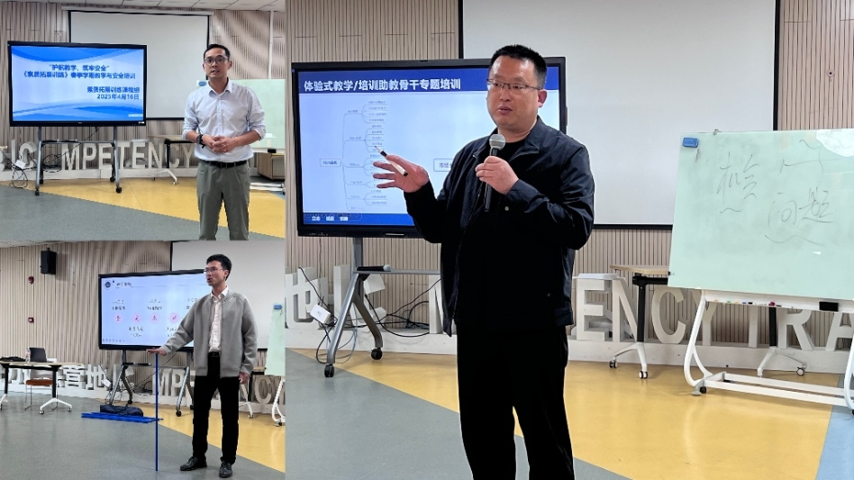 为进一步深入推进我校教学改革工作,提升课程教学效果,增强学生实践能力和综合素质。2025年4月2日下午,综合素质教研室全体教师在紫云英创新创业学院梧桐学创教室召开教学模式大融合教研活动。活动由姚庆阳老师主持,综合素质教研室全体教师参加。 (图为联动专题研讨会现场)首先,姚庆阳老师围绕体验式教学模式的渊源和理论依据展开了分享,重点介绍了素质拓展训练活动的理论背景、教师与学生角色在教学过程中的转换,以及课程对学生认知层次的提升作用,将体验式教学如何实现从知识传授向能力建构的范式转换作了详细说明,为跨课程协同育人奠定理论基础。(图为姚庆阳老师进行理论分享)体验式项目展示环节,李婷婷与周启航二位老师分别带来了“穿越A4纸”和“精神堡垒”两个体验式教学活动展示。“穿越A4纸”展示了如何激发学生的创新意识与合作精神;“精神堡垒”则聚焦学生团队协作和心理韧性的培养。参会教师亲身参与体验后,围绕项目设计、组织形式及教学应用展开交流与讨论。 (图为参会教师参与体验项目)教研室副主任洪杰对三位老师的分享及教