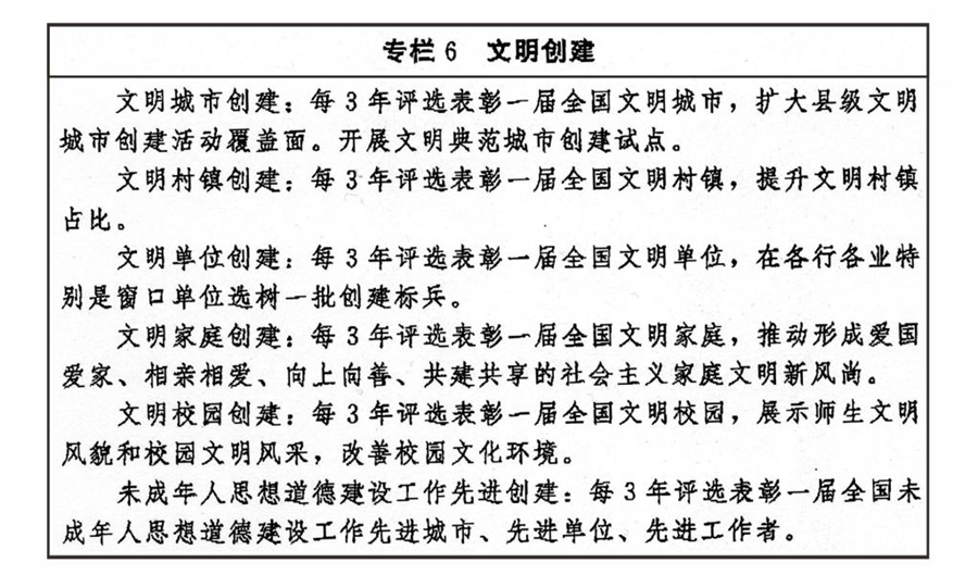 以实施文明创建工程为抓手,推动文明培育、文明实践、文明创建不断深入。创造性开展文明城市、文明村镇、文明单位、文明家庭、文明校园和未成年人思想道德建设工作先进等精神文明创建活动,拓展新时代文明实践中心建设。弘扬科学精神,深入开展爱国卫生运动,深化文明餐桌行动和“光盘行动”,倡导文明健康、绿色环保的生活方式。健全志愿服务体系,广泛开展志愿服务关爱行动。加强网络文明建设。