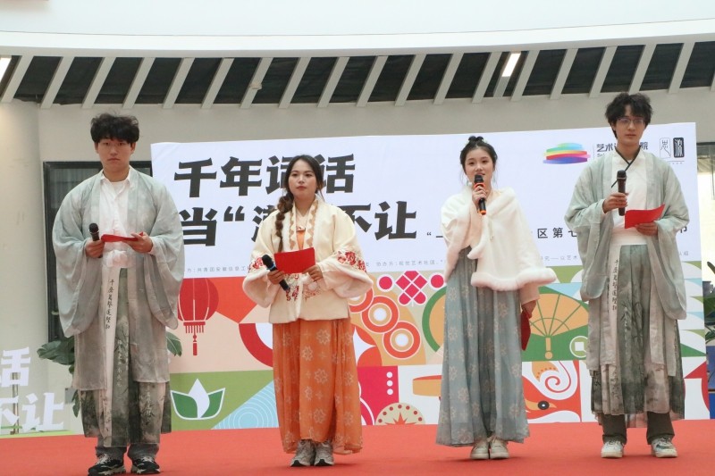文艺演出作为活动亮点,以灵动舞蹈与校园原创歌曲拉开序幕。古筝合奏将古典韵律与现代编曲巧妙融合,婉转旋律引得全场喝彩;融合动画元素的创意戏曲演出片段,用趣味剧情呼应“创新融合”主题;互动环节“辅导员‘食’力抢”“师生诗词对对碰”游戏热闹非凡,多名辅导员带队与学生互动,玩转诗词接龙,现场人潮涌动,获胜团队收获零食大礼包;主持人化身“李白”“苏轼”“辛弃疾”“李清照”身份,开展趣味诗词问答;抽奖送出文创盲盒等精美礼品,让现场氛围持续升温,数千名学子驻足博艺楼活动现场,与老师一起共话唐诗宋词,在欢声笑语中传承古典文学的魅力。