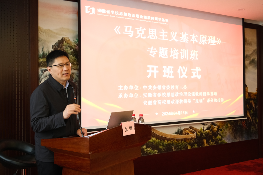 •   4月12-16日,由安徽省委教育工委主办,安徽省学校思想政治理论课教师研学基地、安徽省高校思政课教指委“马克思主义基本原理”课分指导委承办的《马克思主义基本原理》课程专题培训班在蚌埠顺利举办,来自全省高校的70名专职思政课教师参加了此次课程专题培训班。我校马克思主义学院青年教师代表赖敏、郝峰山、张贤法参加了此次专题培训,安徽财经大学马克思主义学院党总支书记、院长张斌出席开班仪式。  在理论讲授环节,复旦大学马克思主义学院教授、博士生导师马拥军以《马克思主义基本原理教材体系转化为教学体系的若干思考》为题,生动的演绎了理论本身的吸引力和思想伟力。他指出了目前思政课教学面临的困境,如何把生涩难懂的、有距离感的教材转化成与学生生活息息相关的知识,全局观把握教材,基于教材但不囿于教材,紧紧围绕马克思主义的主轴对教材体系进行适当取舍与增补。合肥工业大学马克思主义学院教授、博士生导师牛小侠从概念和命题:以问题为导向讲好《马克思主义基本原理》课的关键点出发,围绕马克思主义唯物论、唯物辩证法的总特征和