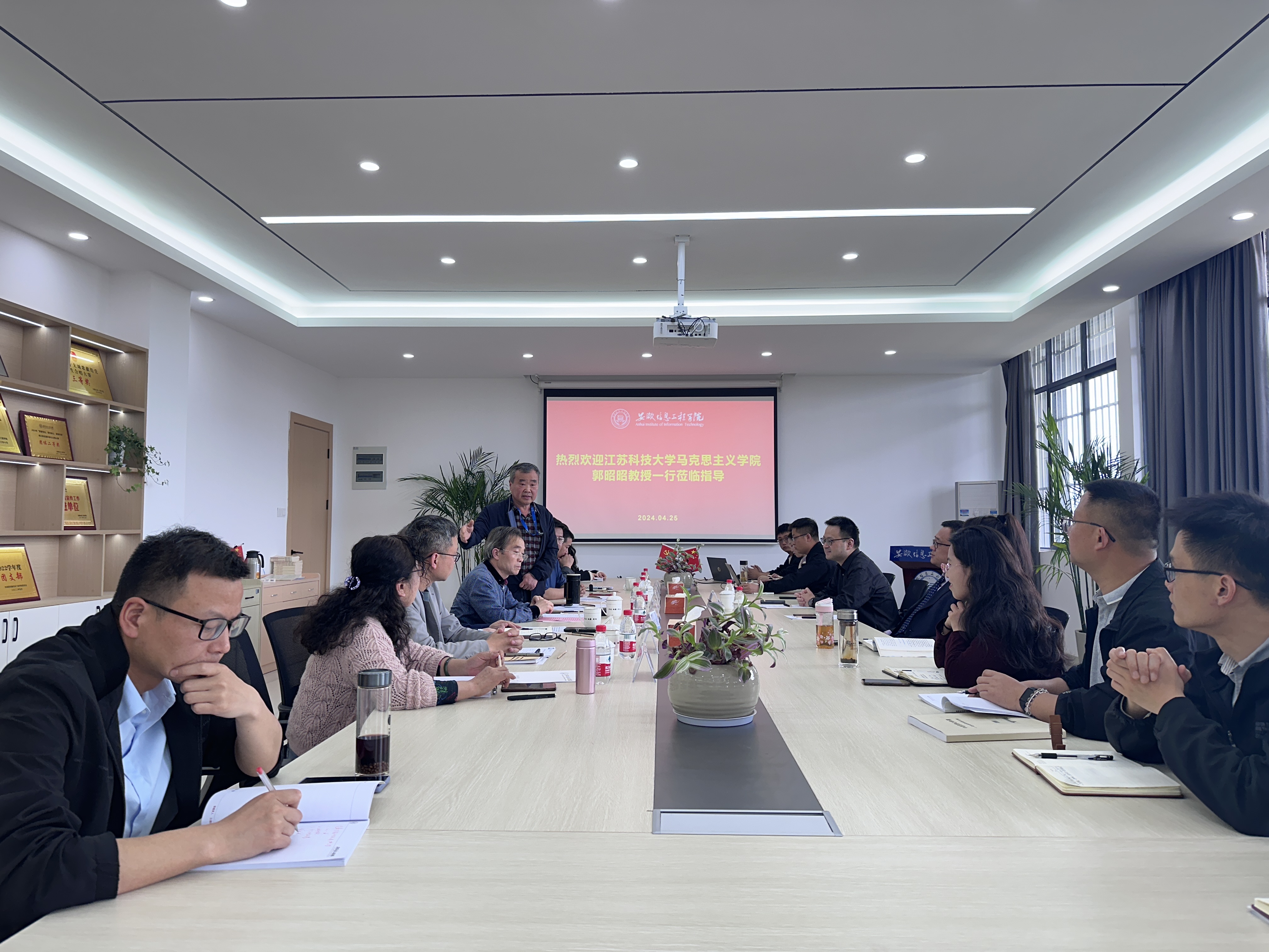 • 4月25日下午,我校马克思主义学院在博雅楼(A1)N502会议室举办了“思政课高质量建设工作坊”第一期活动。活动特邀第三届全国高校思政课教学展示特等奖获奖者,江苏科技大学马克思主义学院郭昭昭教授进行主题教学展示。学校党委书记陈永红、皖南医学院马克思主义学院院长陶庭马、中共湾沚区委党校副校长王丽、我校马克思主义学院全体思政课教师及各单位部分青年教师代表参加,活动由马克思主义学院副院长汪一江主持。(图为活动现场)在课程教学展示环节,郭昭昭教授以《中国近现代史纲要》作为主讲课程,重点围绕课程第五章“中国革命的新道路”中的“红军长征胜利和迎接全民族抗战”作授课示范展示。他先后从长征史的研究、长征的背景、长征的部队、长征的路线、长征的过程、长征的胜利与铸就长征精神、奋力走好新时代的长征路等重要方面,以正确党史观生动讲述了中国共产党取得长征伟大胜利的光辉历程,展现了党在风雨兼程中坚韧不拔、勇往直前的精神风貌。他利用问题链教学法,依据教学目标,将教学内容设置为系列问题并以其为纽带、以知识形成发展和培养