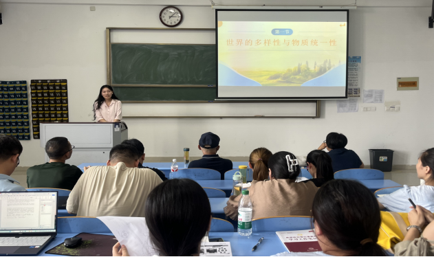 9月17日下午,马克思主义学院马克思主义基本原理课程组在A1N406召开2025—2026学年秋季学期第一次教学研讨会。会议由课程组负责人韩燕玉老师主持,全体任课教师参加。本次会议围绕教学磨课、前期工作总结及实践研学方案等多项议题展开深入交流与讨论,意在推进新学期教学工作的有序开展。会议伊始,李林老师进行了磨课展示,围绕“物质多样性与物质统一性”内容,以“理论讲解+案例互动”的方式,呈现了一节较为生动的原理课教学片段。在场教师就教学方法、课堂设计和师生互动等方面展开了积极评议,共同探讨如何进一步提升教学效果,增强课堂吸引力,营造更优质的学习氛围。(图为李林老师进行磨课)随后,会议进入第二阶段,各位教师就开学前两周的教学情况进行了总结与交流。大家反馈交流了学生出勤率、课堂参与度及知识衔接和难点理解方面的共性问题。针对这些问题,课程组集体商讨了优化教学策略的办法,包括调整授课节奏、增加典型例题分析、利用线上平台辅助答疑等,力求实现因材施教,帮助学生更好地掌握课程内容。最后,会议重点讨论了课外