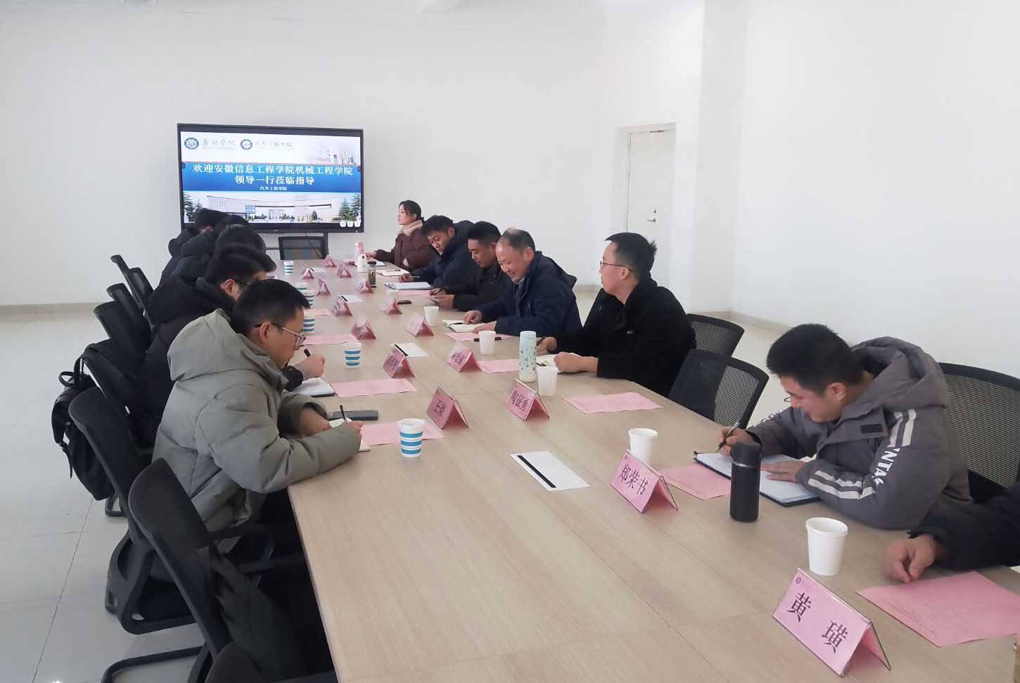 本网讯 为全面落实学校“十五五”事业发展规划部署要求,深入推进专业建设、学科建设、招生就业及硕士点建设等核心工作,1月21日至22日,机械工程学院执行院长陈杰平带队,赴芜湖学院、滁州学院开展专题调研学习交流活动,旨在借鉴兄弟院校先进经验,破解发展难题,明晰建设路径。1月21日,调研团队首站抵达芜湖学院汽车工程学院,开展深度调研交流。芜湖学院汽车工程学院院长杨志全面介绍了该院在专业建设与人才培养方面的经验及成果,执行院长吴明明围绕专业设置优化、课程体系构建、实践教学创新以及产学研合作模式等方面的特色做法进行了细致的分享。调研团队通过实地参观教学场地、聆听经验分享、开展座谈研讨等多种形式,深入汲取对方特色办学理念与优质教学方法,为学院专业建设与学科发展拓宽了新思路、新视野。(图为与芜湖学院交流活动现场)1月22日,调研团队前往滁州学院机械与电气工程学院开展专项学习交流。该院院长王精明详细介绍了学院在学生培养、学科建设、招生就业等方面的整体工作情况,重点围绕硕士点建设工作经验进行了细致的分享,